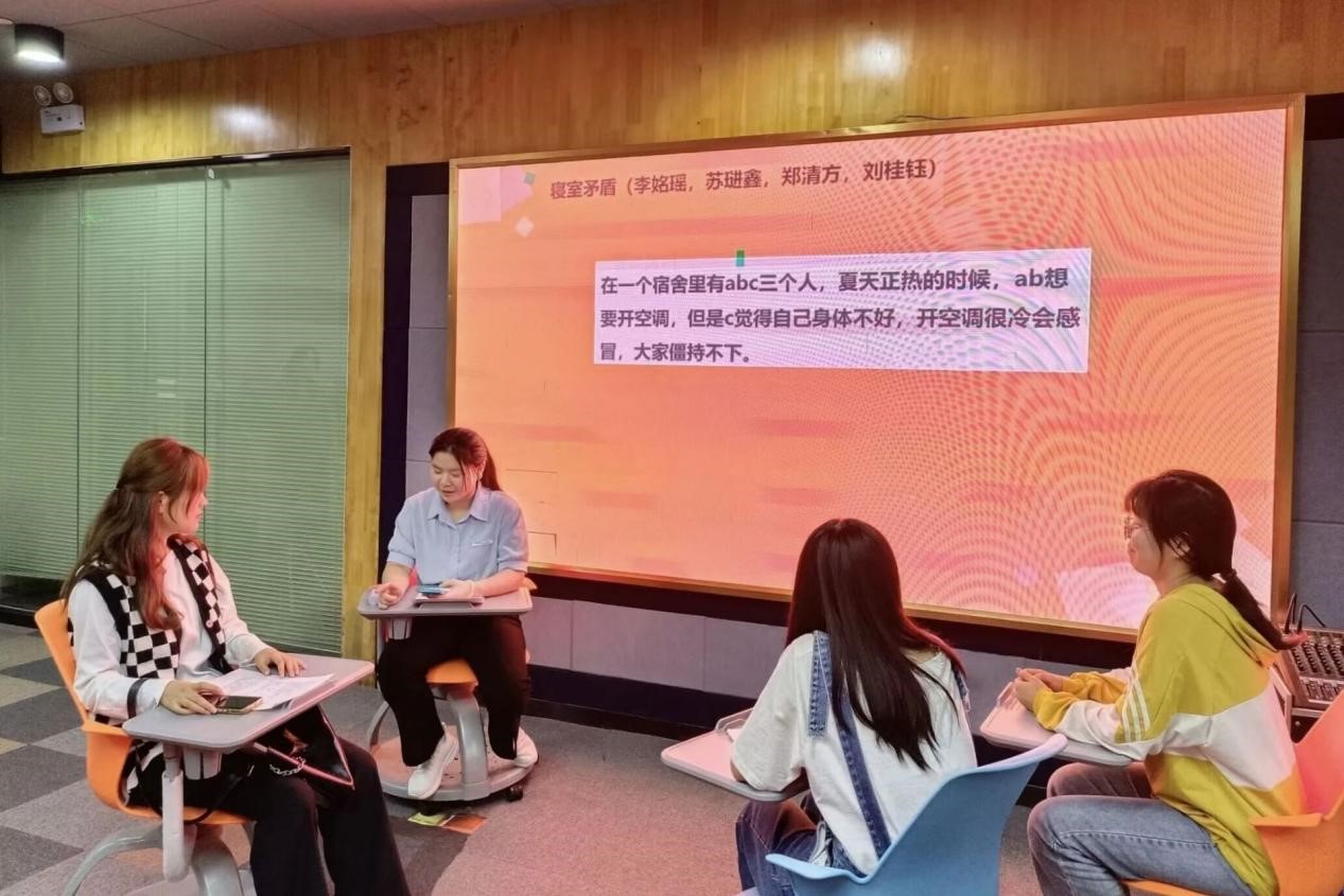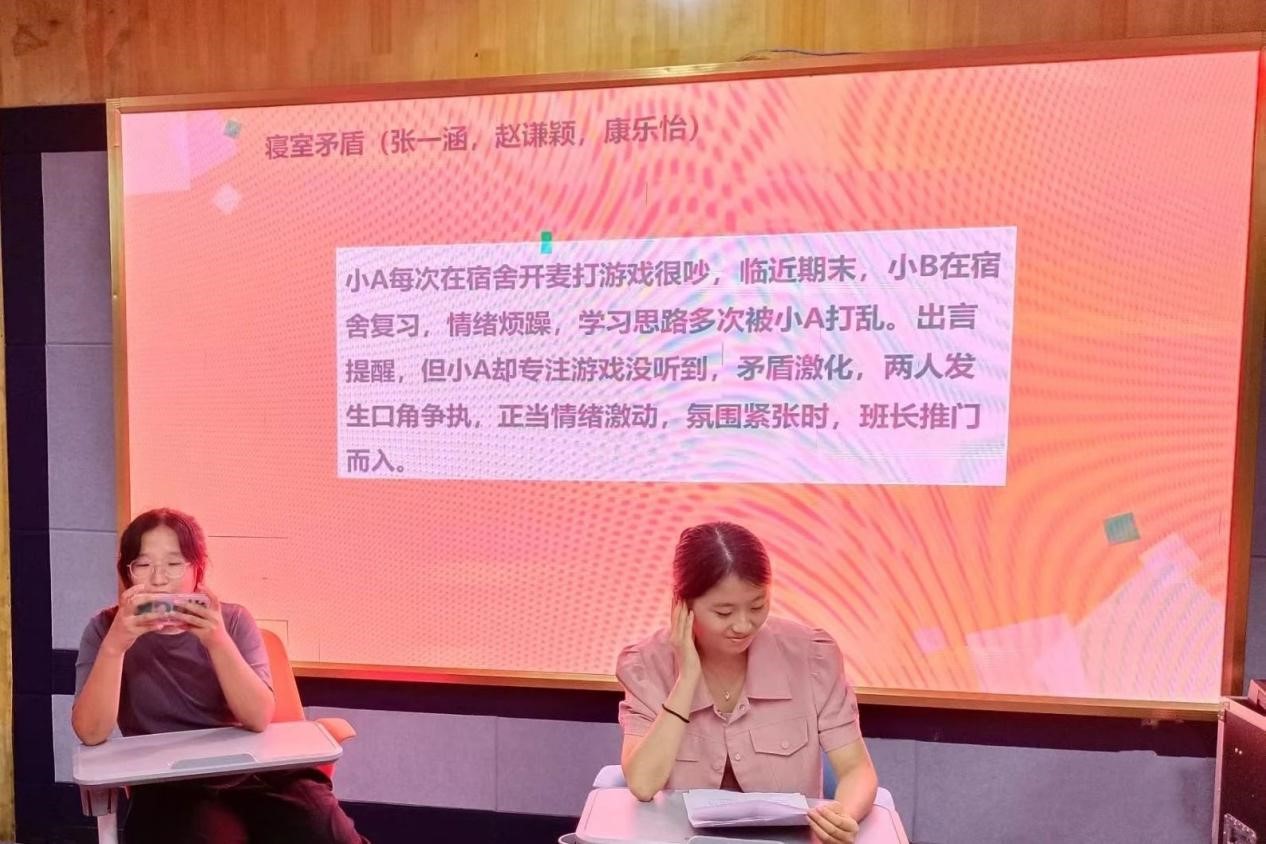 在情景模拟环节,选手通过模拟学生工作中产生的问题,以情景在线模式切身实地体现学生干部工作职能及其个人工作能力。题目或情感上的不如意,或舍友间的小摩擦、或深陷电信诈骗风波、又或者学习上的难堪重负,选手们沉着冷静,思维灵敏,应对如流,逐一解决工作中的实际问题。