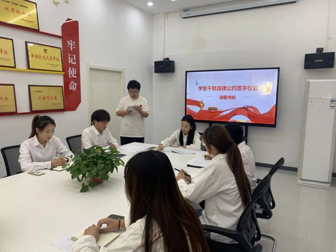 此次签约仪式对学生干的日常工作和行为准则作了进一步规范,让学生干部在今后的工作和学习生活当中能够更加专业化、认真化、规范化,做到严于律己,约束他人。同时,强化了德馨书院学生干部组织内部建设,令学生干部内部组织更具凝聚力和向心力。未来,德馨书院将继续依托学生组织,推动从严治团与学生干部队伍的建设,培养和锻炼出一批有理想、有担当、有朝气、有作为的学生干部。