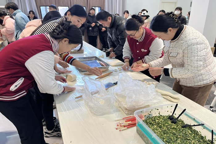12月22日,崇德书院党建工作室热闹非凡,辅导员们亲自下厨包饺子、制作糖葫芦。一个个饺子、一串串糖葫芦摆放整齐,象征着美美满满,寓意着好事连连。“今天恰逢冬至,又是考研前一天,经过前期的数据统计,好多同学目前都在车上,从外地赶回来看考场,中午可能没有时间吃午饭。我们提前包些饺子,到时候可以给学生煮饺子吃,让学生在寒冷的冬天能够感受到家一般温暖。”辅导员魏欣珂说道。“当老师知道我中午没有吃饭的时候,亲自给我下了一碗饺子,我超级感动。吃着热腾腾的饺子、甜甜的冰糖葫芦,使我焦虑的心得到缓和,我一定会以优异的成绩回报学校的培养和老师们的关心。”考研学子潘琳慧说道。