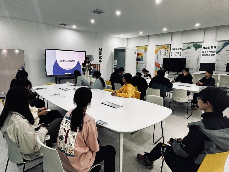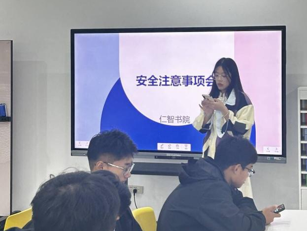 为推动2023—2024学年第一学期体育文化节工作高效开展,提高运动员们安全意识,10月13日下午,仁智书院学生会文体部在仁智书院多功能厅会议室开展了体育文化节安全注意事项宣讲会。文体部分管主席杨玉婉,部长郑明月、张凯瑞、谢茹、朱保锦及各参赛队伍的负责人参会。