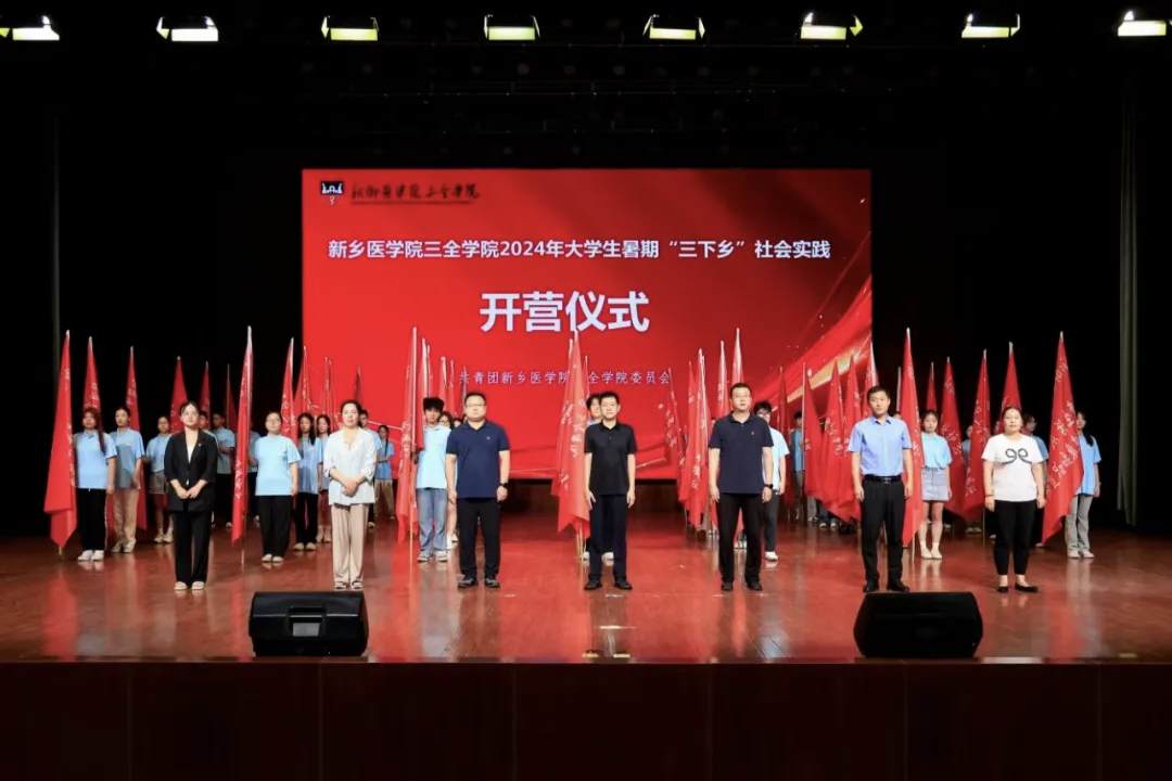 随后,顾欢宣布我校2024年大学生暑期“三下乡”社会实践活动开营!仪式最后,与会领导嘉宾为即将出征的实践团队代表授予队旗。