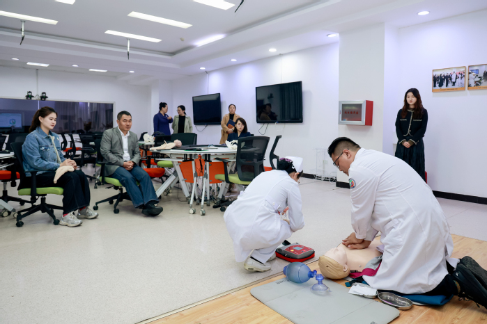 顾佳欣主任讲解了科普培训基地评审认定流程,详细介绍了科普培训基地项目进展情况,展示了协会近年来在全国开展心肺复苏科普培训的工作成果。校团委负责人马苏娟介绍了我校科普培训基地的建设思路、建设情况及下一步培训工作设想。