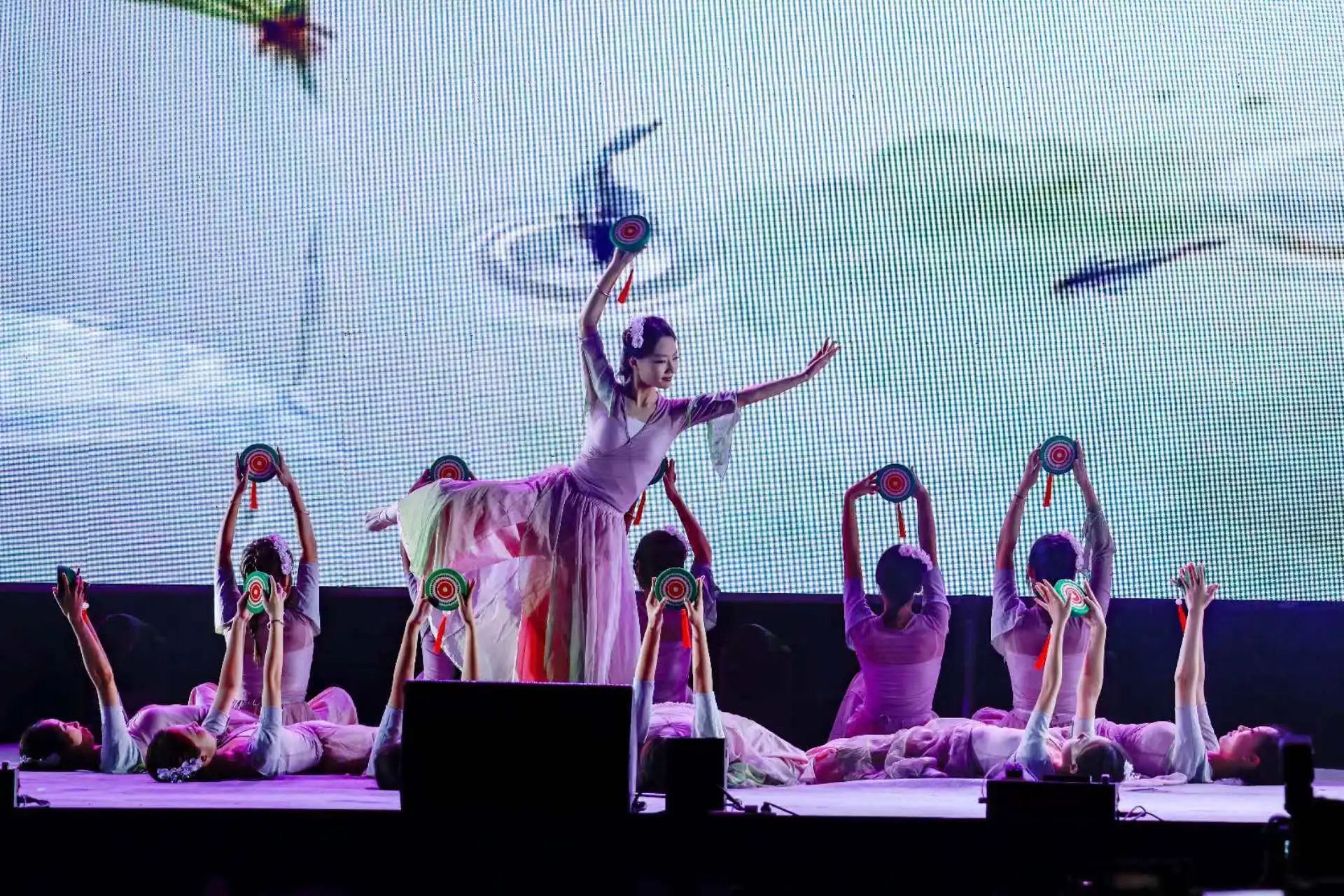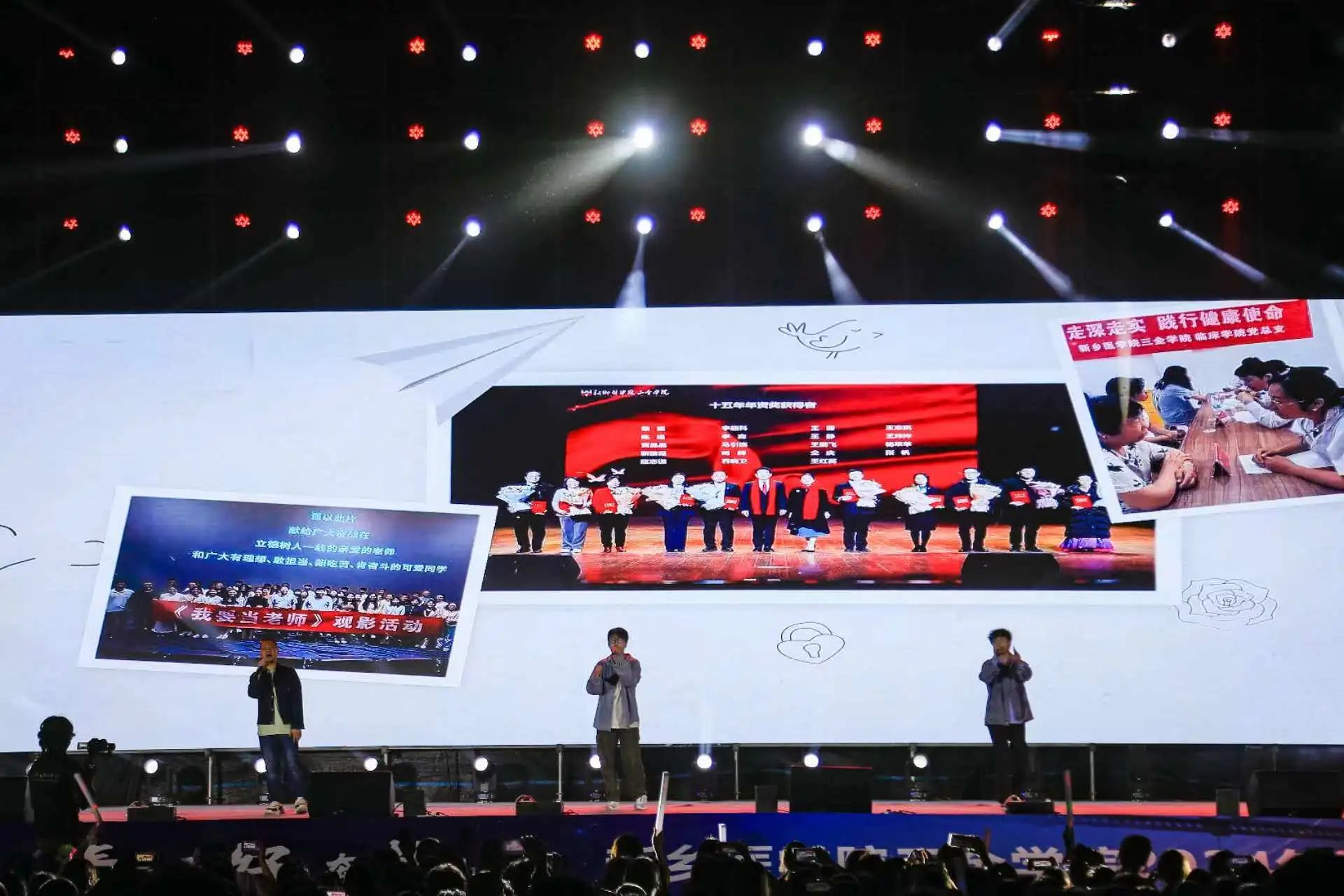 在掌声的余韵里,晚会进入第二篇章——“成长·逐梦之旅”。舞蹈《琴湖莲鼓》用轻盈曼妙的古典舞生动演绎了中华传统文化和东方美学的底蕴精髓。小品《师生之间》以轻松诙谐的剧情、荒诞幽默的视角,演绎了辅导员与学生角色互换后发生的一系列故事,在欢声笑语中,增进了辅导员和学生之间的了解与沟通,同学们真切感受到了老师们的辛苦与不易。随后,老师与同学们上台合唱《好想大声说爱你》,他们用歌声互道爱意,表达着师生之情与对三全的爱,悠扬的歌声唱出了青春的希冀与未来。
