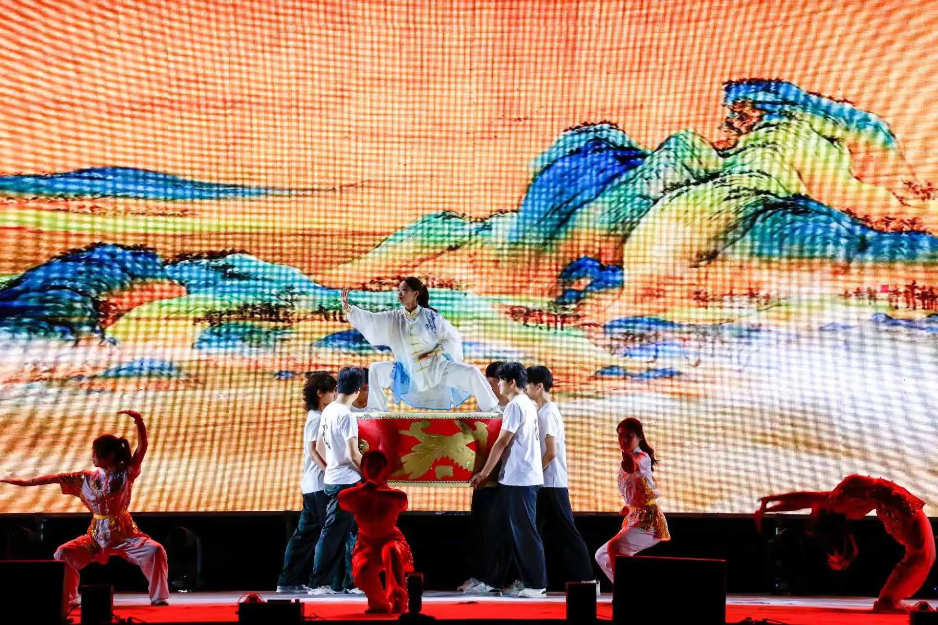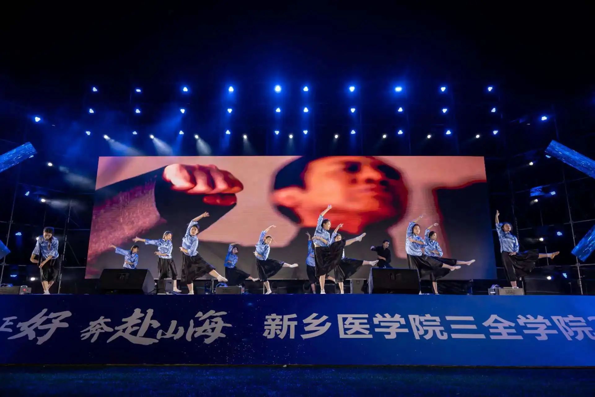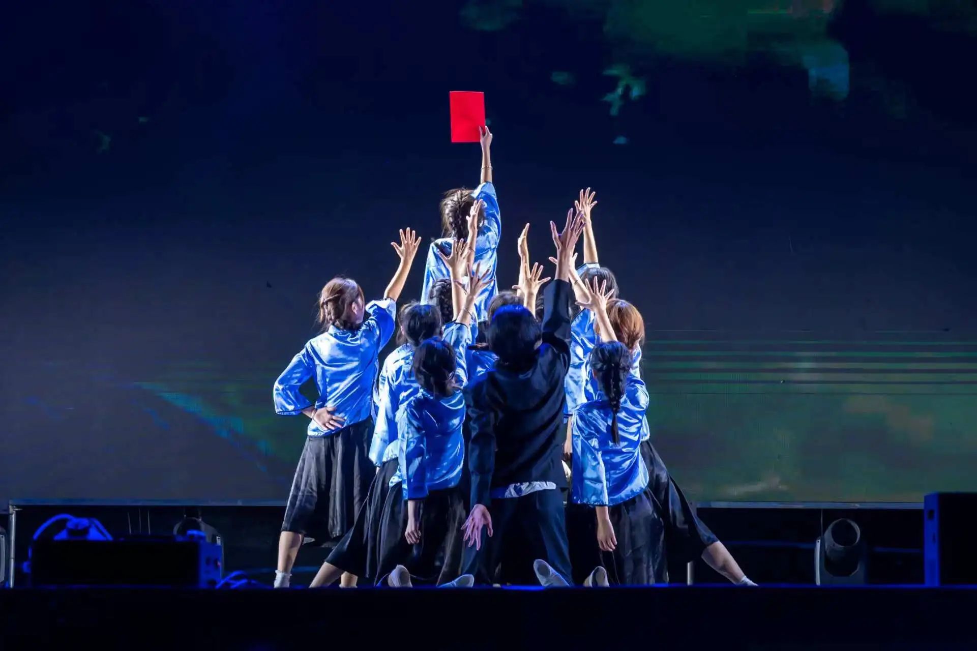 第三篇章“远方·向未来”,武术《武韵华章》刚劲有力、气势长虹,让现场感受到了中国武术的博大精深,教官上台表演更是把晚会推上高潮。舞蹈《觉醒时代》生动再现了中国人民的奋斗历程,他们的舞姿充满自信和力量,舞蹈动作既优美又有力,让在场观众感受到了中国人民的奋斗精神和坚定理想,大家深切体会到正义的价值、和平的珍贵以及祖国的伟大。由新生辅导员和2024级新生代表共同带来的朗诵《梦想与荣光》以铿锵有力的语调,表达了对伟大祖国的热情讴歌与美好祝福。他们的声音,如青春号角激励着每一位三全学子,要胸怀天下、志存高远,在民族复兴的赛道上奋勇争先。