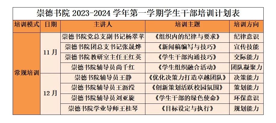 培训对象:崇德书院全体学生干部。