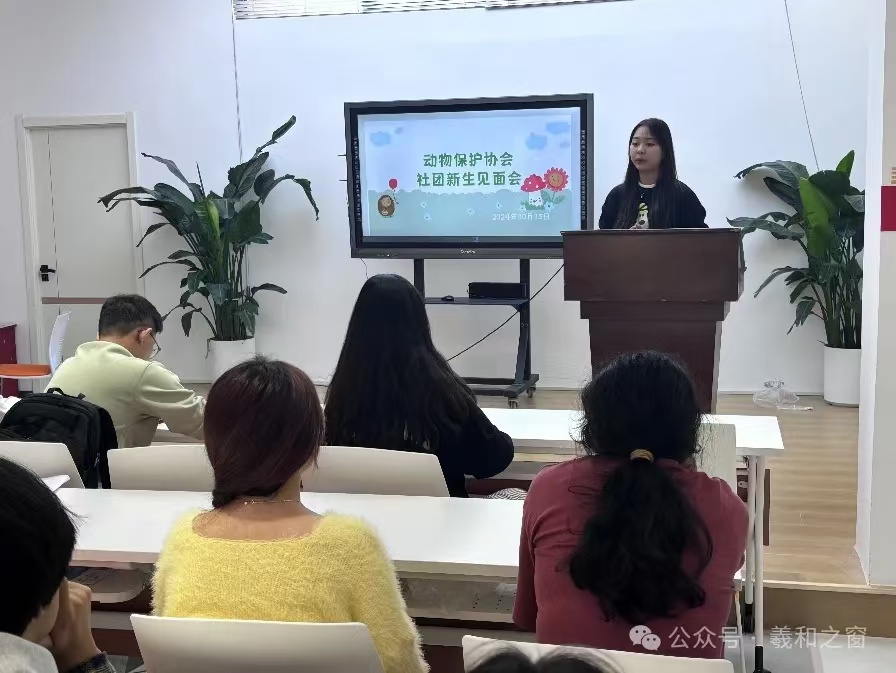 10月15日下午,动物保护协会在羲和书院思哲辩论室召开了新生见面会。会议伊始,动物保护协会的四位负责人分别进行了自我介绍。随后,协会的两位指导老师,羲和书院的李犇老师、崇德书院的魏新珂老师,与同学们进行亲切的交流。他们首先对新生表示热烈欢迎,随后分享了自己关于动物保护的宝贵经验。两位老师详细介绍了协会的基本工作内容和年度社团计划和未来发展。