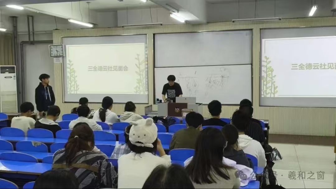 10月17日,三全德云社在谨学楼进行了本学期第一次社团见面会,本次见面会由社长张文博主持,社团干事分别上台进行自我介绍,向大家讲述社团的组成以及社团活动的开展,让社团成员了解本学期即将开展的社团活动的主题,与成员们进行沟通交流,听取成员们对于社团发展的建议,增加成员之间的交流互动。同时羲和书院孙玥老师向同学们讲述了对于社团的规划以及对于社团活动的建议,对社团的未来发展提出更高的标准和要求。