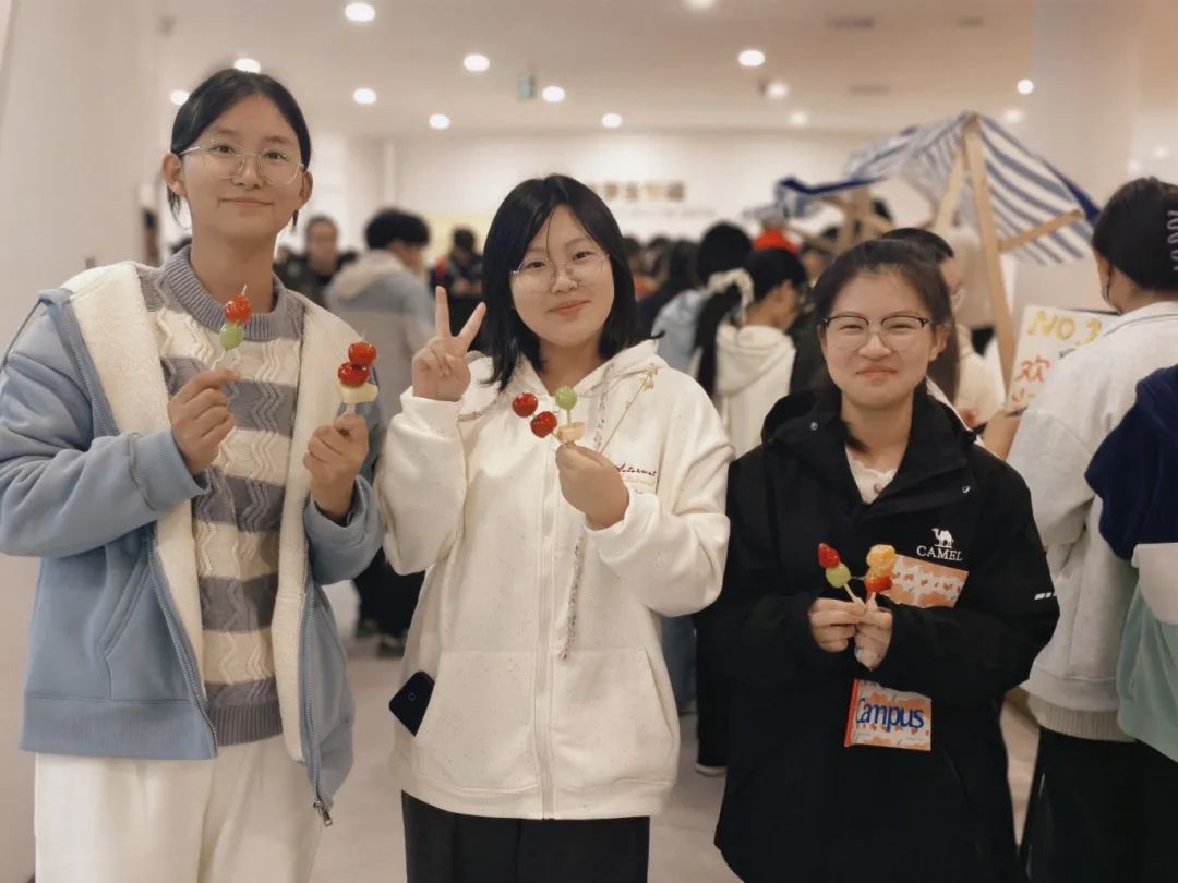 将白糖和水倒入锅中,小火慢熬,糖液在锅中逐渐变得浓稠如蜜,色泽也由浅黄转为金黄,散发出诱人的香甜味道。学生们纷纷排队体验亲手制作糖葫芦和糖画的乐趣,看着糖液变成美食,领悟到最美丽的风景就藏在动手之间。那令人垂涎欲滴的糖葫芦和栩栩如生的糖画,宛如一件件珍贵的艺术品,让学生在享受甜蜜的同时,体会到了劳动的快乐和成就感。甜蜜的时光,甜美的笑容,大家欢聚一“糖”,连空气都带着甜甜的气息。随着最后一道糖汁的流淌,一只栩栩如生的蝴蝶在金黄色的麦芽糖中绽放光芒,这场别开生面的心理教育活动落下帷幕,学生们意犹未尽。2023级生物技术专业贾潆楠表示:“通过这次活动,我感受到了烹饪劳动的乐趣,特别是糖画的魅力,让我了解和喜爱上了这一传统艺术形式。”参与者们纷纷拿起自己的作品合影留念,他们的笑容灿烂而温暖,仿佛是对这次活动最美好的诠释。