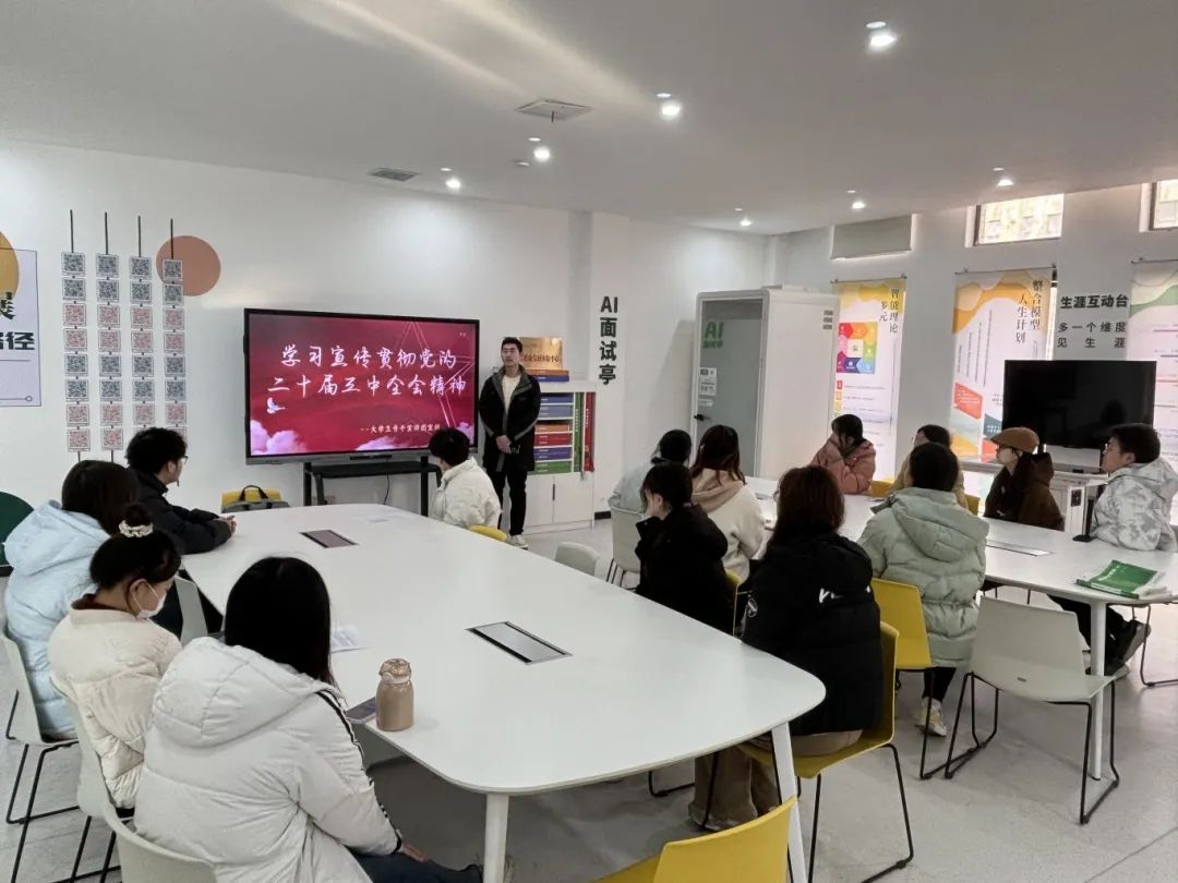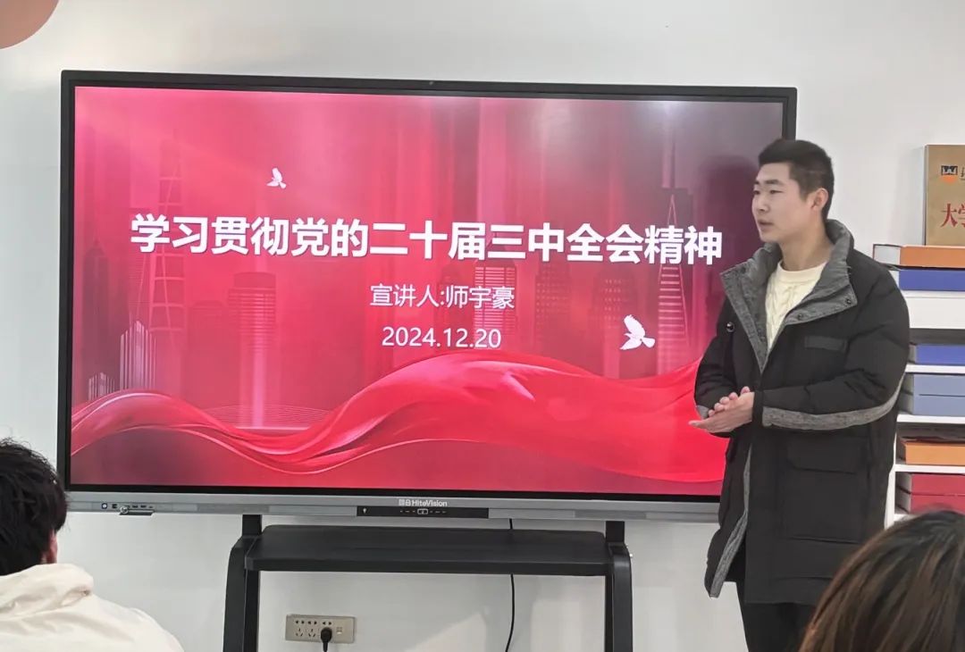 宣讲员刘琳璞向我们详细介绍了党的二十届三中全会的会议内容、会议意义以及实践要求,同时呼吁新时代中国青年要深入学习贯彻党的二十届三中全会精神,以更加坚定的信念、更加扎实的知识、更加积极的行动,肩负起时代赋予我们的使命,为实现中国式现代化、推进强国建设、民族复兴伟业贡献青春力量!