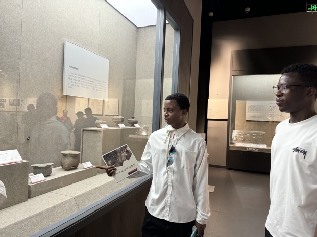 青玉鸮前,喀麦隆的凯兰驻足观赏。“雕刻得太细腻了!”他感慨道。中国学生陈琳珂点头附和:“‘天命玄鸟,降而生商’,商代人认为鸟类是自己的祖先,鸮寓意着消除兵灾。这个青玉鸮用料讲究,制作精美,充分展现出商代天地人神合一的信仰。”