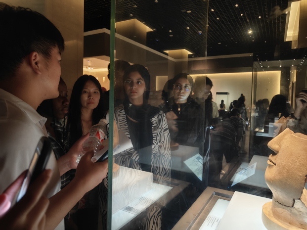 丝路展厅里:中国学生魏靖指着展台中的三彩陶片:“黄绿白三色釉流淌的不只是色彩,更是国际商贸的文明色谱。”爱莎凝视骆驼背上的胡商俑:“它让我看见千年前的‘一带一路’!今日我们站在这里,何尝不是新时代的‘驼队’?”