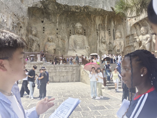 本次洛阳站活动是我校“行走河南,感知中国”系列实践的重要组成部分,依托“知行合一” 育人传统,通过“中国学生代言家乡,国际学生感知文化”双向模式:中国学生担任文化讲解员,以双语解读龙门石窟、唐三彩强化传播能力;国际学生通过实地探访、民俗实践深化文化感知,为“行走河南·感知河南”品牌覆盖全省18地市奠定基础。未来,我校将持续创新实践形式,搭建多元文化平台,培养更多知华、友华、爱华的国际人才。(审核:卢明臣 王德胜)