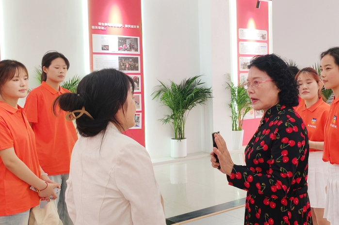 最后,实践团特别邀请汤玉英老师参观了我校红十字生命教育基地。在生命教育体验区,队员陈如梦为汤老师详细讲解了心肺复苏术的操作要点,并进行了标准演示。“1、2、3...按压深度要达到5-6厘米...”汤老师认真观摩,并学习心肺复苏操作要领。她感慨道:“医学生不仅要传承红色精神,更要练就过硬本领,这才是对先辈最好的告慰。”