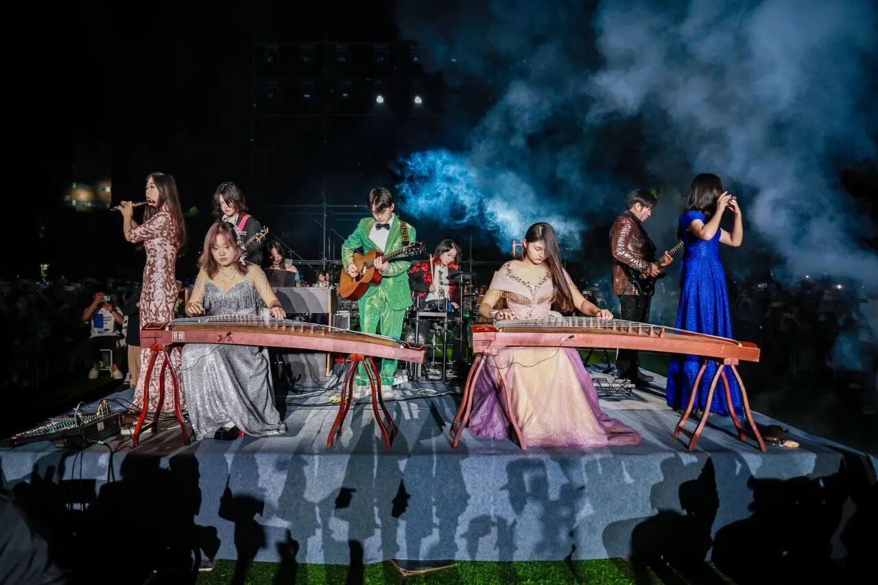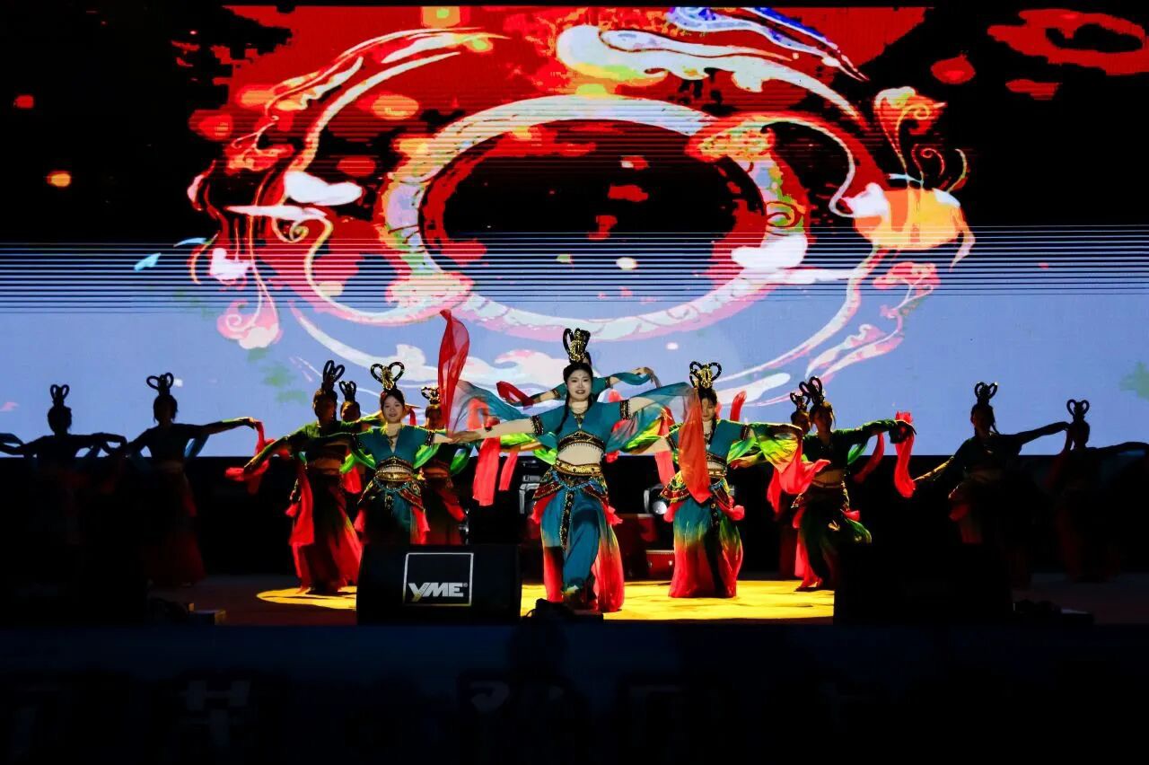第一篇章“缘起·山海初声”,器乐合奏《韶华逐音》用跳跃的音符交织成灵动旋律,既奏响了青春的明快节奏,也传递出新生对大学生活的无限向往。“我的未来式由我做主……”一首首耳熟能详的青春曲目轮番唱响,熟悉的旋律瞬间引发全场共鸣,大家挥舞着荧光棒轻声合唱。舞蹈《飞天》更是将古典之美展现得淋漓尽致,舞者们以轻盈曼妙的舞姿再现“飞天”神韵,衣袂翩跹间尽显中国传统文化的厚重与雅致,台下掌声与喝彩声此起彼伏。