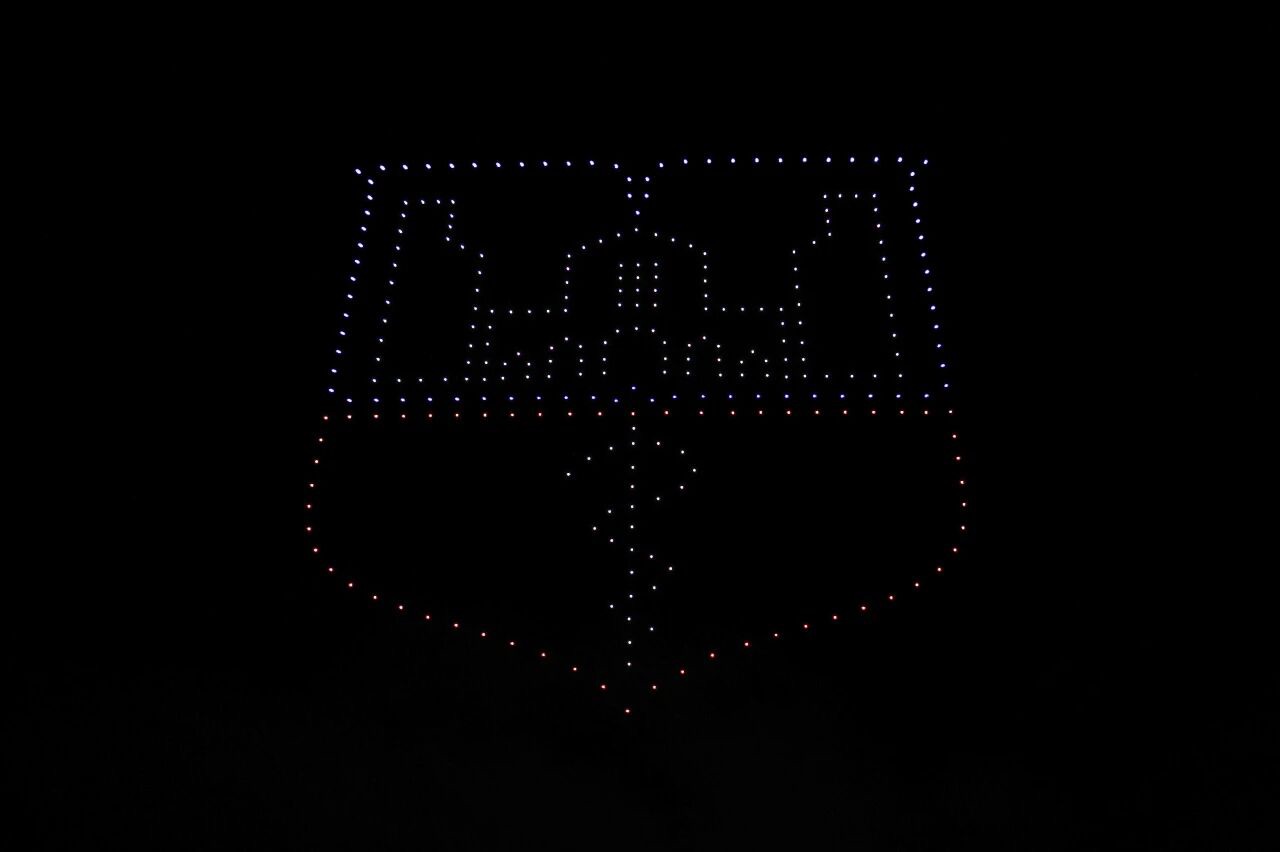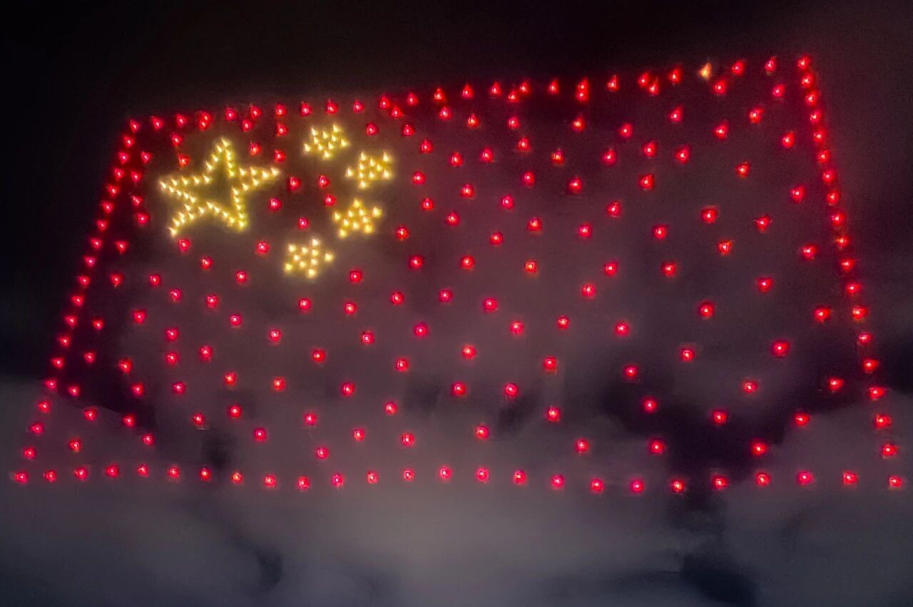 在全场激昂的氛围中,晚会特别策划的无人机表演震撼启幕。数百架无人机在空中编队集结,先是组成“豫北医学院”巨型立体字样,明亮的灯光在夜色中熠熠生辉,瞬间引发全场学子的自豪欢呼;随后,一个个校园生活的画面缓缓浮现,熟悉的校园元素瞬间拉近了学校与新生的距离;当“东风5C 覆盖全球”的字样惊艳亮相,激昂的画面与学子们的家国情怀同频共振,现场掌声与喝彩声此起彼伏。