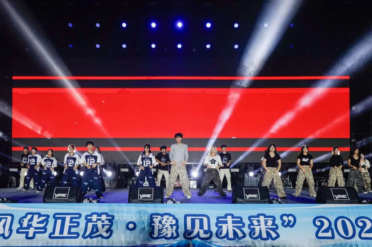 随着动感旋律奏响,开场曲《哈喽,New boy》拉开了晚会序幕。晚会以“风华正茂·豫见未来”为主题,精心打造“缘起·山海初声”“热烈·青云奋羽”“起航·长风破浪”三个篇章,通过歌曲、舞蹈、朗诵、小品等多元艺术形式,为现场师生呈现了一幅生动鲜活、精彩纷呈的青春校园画卷。